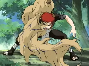 saat Gaara berubah menjadi setengah Shukaku, Gaara menjadi lebih kuat,